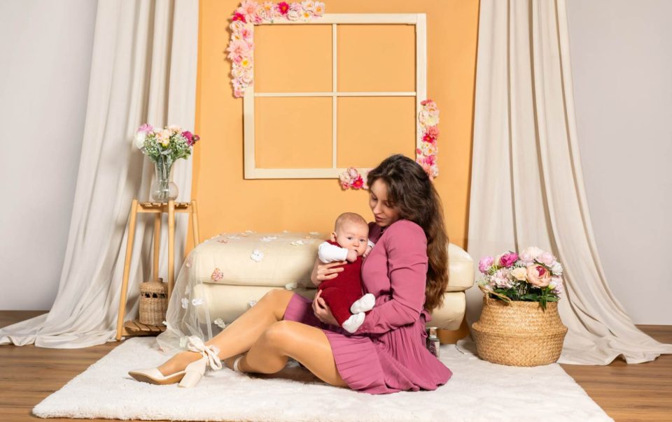 Mini pomladno studijsko fotografiranje v Ljubljani v toplih mareličnih tonih. Nežni portreti za ženske, mamice in družine. Rezervirajte svoj termin.