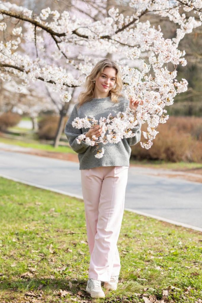 Takšna izbira ustvari harmoničen videz, ki se lepo zlije s pomladno kuliso.