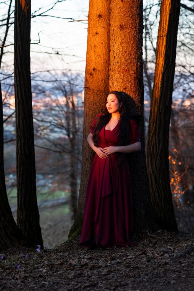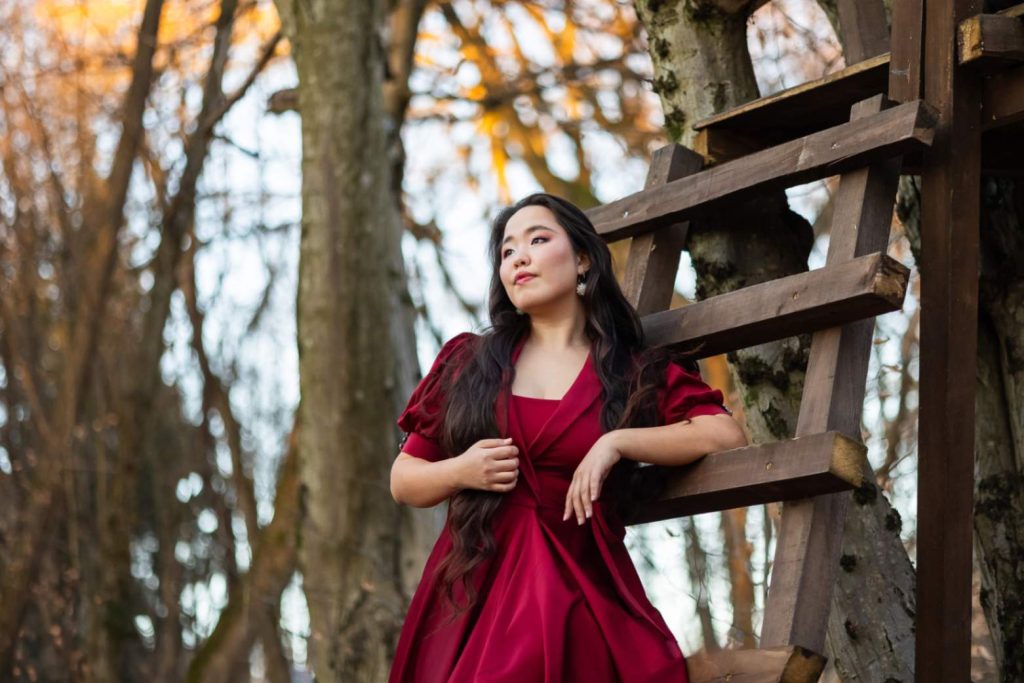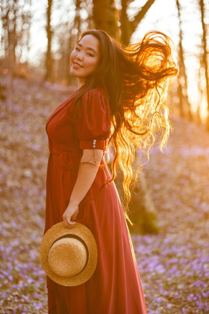 Zgodnja pomlad ponuja posebne pogoje za fotografiranje. Svetloba je mehka in topla, narava pa še ni preveč bujna, zato portretna fotografija ostane osredotočena na osebo.